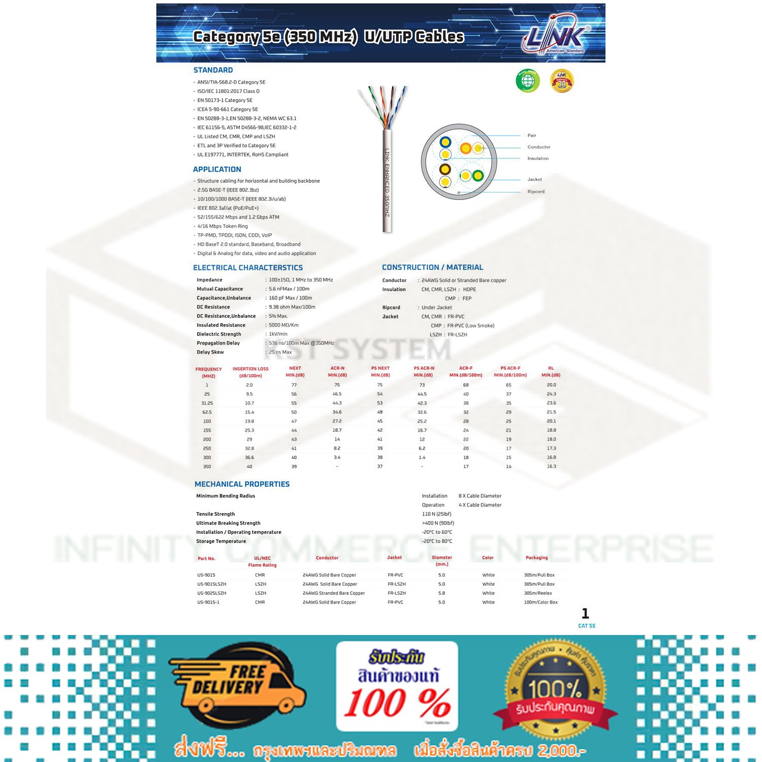 LINK (US-9015LSZH) สายแลน CAT5E (305m/Box)
