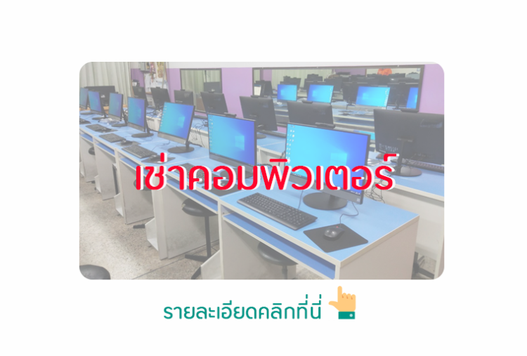 โครงการเช่าคอมพิวเตอร์ เป็นโครงการที่เหมาะสำหรับ โรงเรียน และ องค์กร ที่ต้องใช้คอมพิวเตอร์เป็นจำหน่ายหลายๆ เครื่อง เพราะในโครงการเช่าคอมพิวเตอร์นี้จะมีงานบริการ Onsite Service ภายใน 48 ชั่วโมง เวลาทำการ เพื่อให้คอมพิวเตอร์ทำงานได้อย่างมีประสิทธิภาพตลอดสัญญา โดยทางบริษัทมีตัวเลือกต่างๆให้ลูกค้า สามารถคลิกเลือกรายละเอียดการเช่าได้เลย